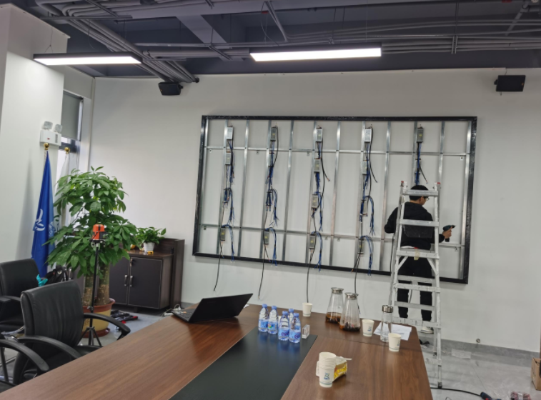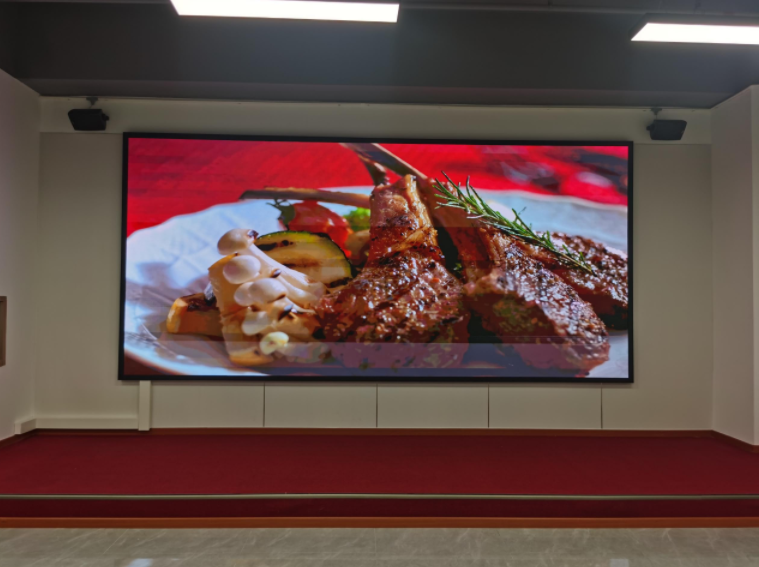 該LED會議顯示屏安裝在深圳前海某集團公司會議室,面積約為4900*2340mm平米,采用1.25mm點間距,顯示效果清晰,色彩艷麗。根據客戶需求定制屏幕的安裝方案,極簡鋼構及超輕薄設計,使得顯示屏完美貼合且無損玻璃墻體。屏幕為大型活動、宴會、宣傳等場合提供文字、影像播放功能。一經點亮,生動鮮活的畫質,屏幕猶如一幅畫卷,成為該復合型城市產業(yè)綜合體一張靚麗名片。